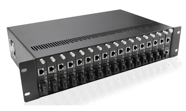 2-U 19’’ Rack-mount 17 slots media converter chassis supports plug-and–play installation of convert modules, can hold at most 16 card-type converters of 10/100M. One slot of the 17 slots media converter chassis is for net manager board .This converter chassis can supply several media converters with power, this will simple the links and structure, it can work stably and adapt broad width of voltage .It can store strong power and can be operated and managed easily. The maintenance of this chassis is also very easy. This option is the very one to meet the requests of good stability , high capacity , good integration and good quality .With all these advantages ,this option can supply users with an effective solution of networks
