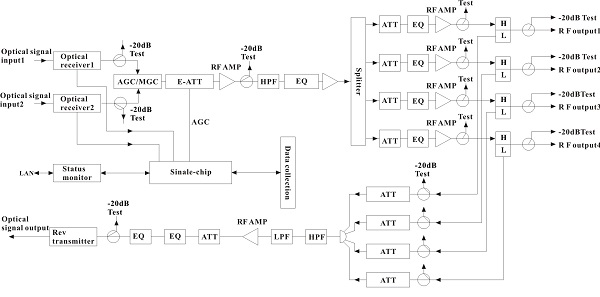 (2) Advanced AGC function. Output level is unchanged and CTB, CSO is essentially the same when optical power input is changed (-8-+2dBm).