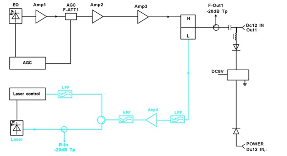 2. Backward optical transmit part: Link flatness and NPR dynamic range are the link indexes which is composed of backward optical transmitter and backward optical receiver.