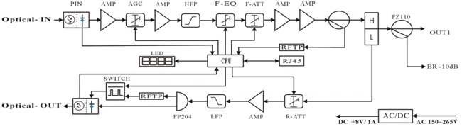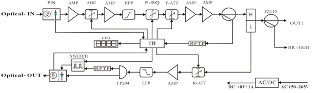 Block Diagram OPR-2108GK with II class network management transponder, FZ110 (tap) output block diagram