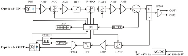 OPR-2108GK with II class network management transponder, FP204 (two-way splitter) output block diagram