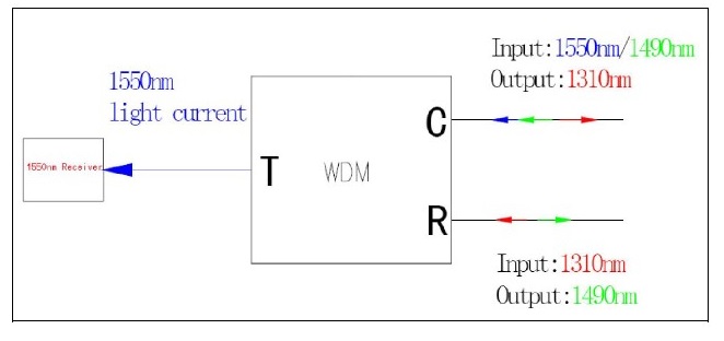 1) Specially design for FTTB application, integrated WDM, receiving wavelength: 1550±20nm, loop out the 1310/1490nm optical signal to connect with ONU equipment.
