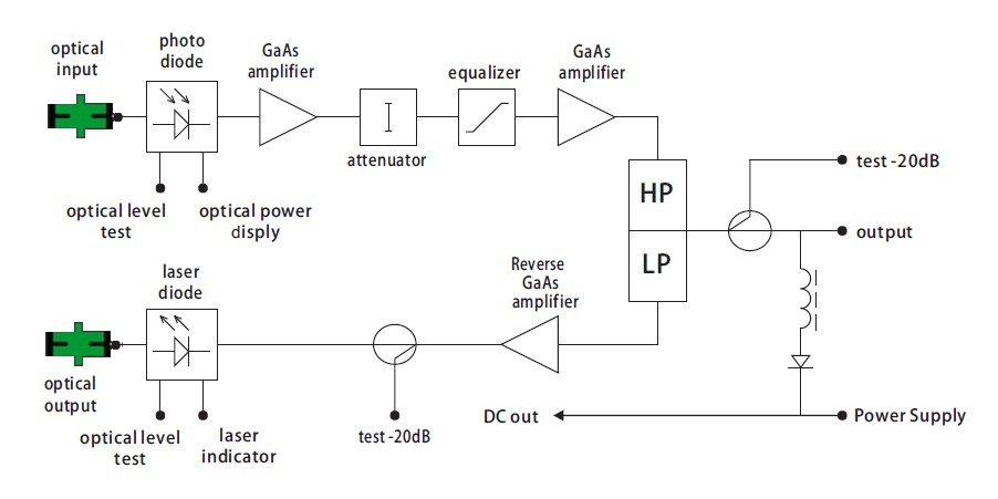 OPR-1285D is a latest version of bi-directional optical fiber CTAV terminal equipments. It contains an optical receiver and a reverse channel transmitter. It adopts low noise high sensibility PIN diode as optic-electric converter, GaAs amplifier module to amplify, With high performance, reliability, low cost and compact design, it is especially suitable for HFC CATV bi-directional networks.