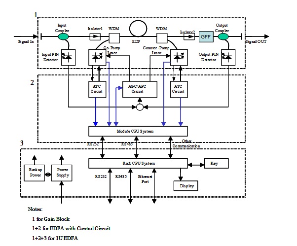 (2) high output booster and high sensitivity Pre-Amplifier improve the system loss budget
