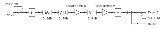 (2) It is more convenient to debug because of the adjustable equalizer/attenuator, plug-in output tap and the scientific and reasonable on-line detection ports.